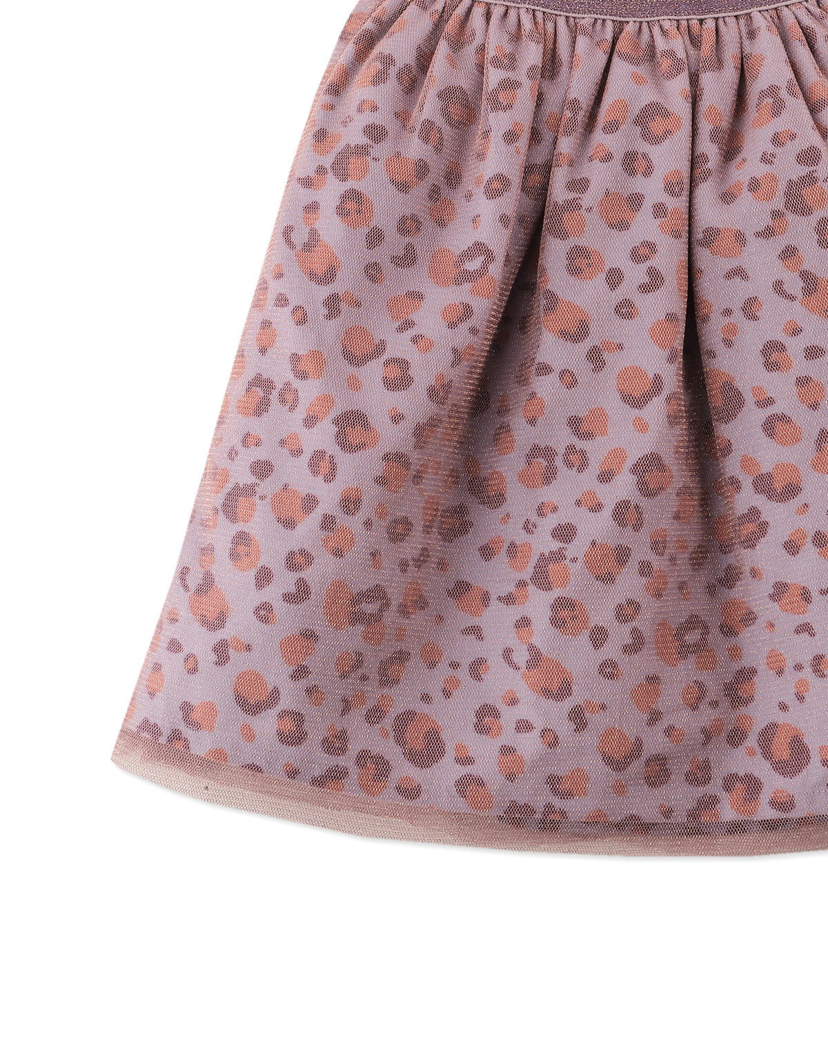 GIRLS LEOPARD PRNT SKIRT WITH LUREX TULLE OVERLAY