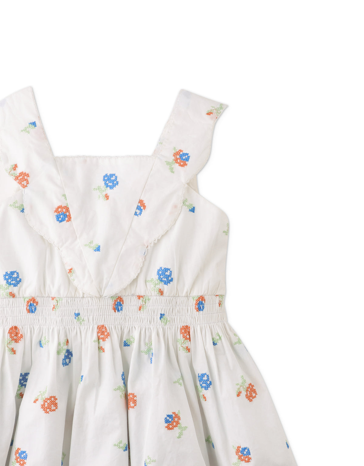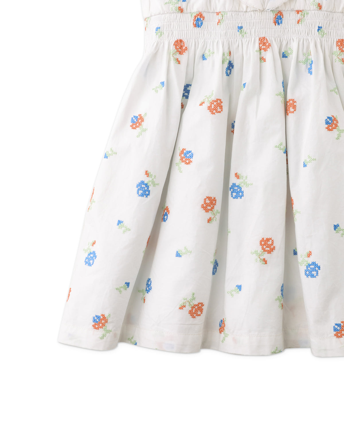 Nurture your little bud's style with our Milena cross-stitched dress, blooming with intricately designed embroidery details.