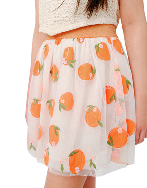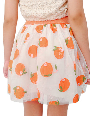 GIRLS ORANGE EMBROIDERED SKIRT