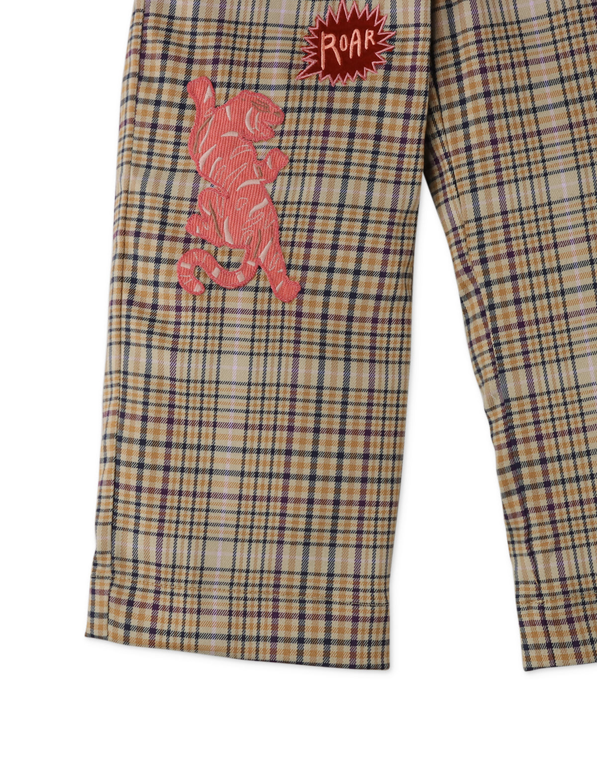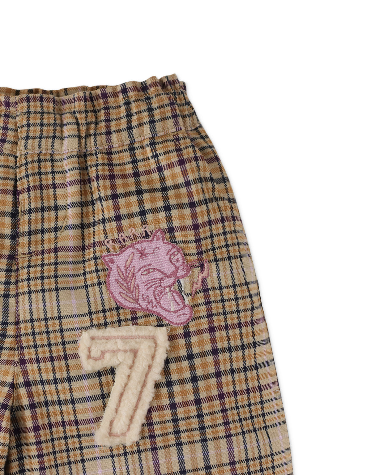 GIRLS PLAID PULL ON PANTS WITH EMBRO APPLIQUES