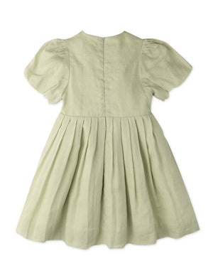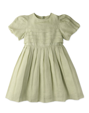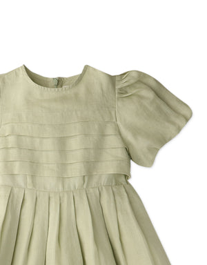Dance and play in this adorable green pleated bodice dress embellished with playful bubble sleeves for added fun to every twirl!