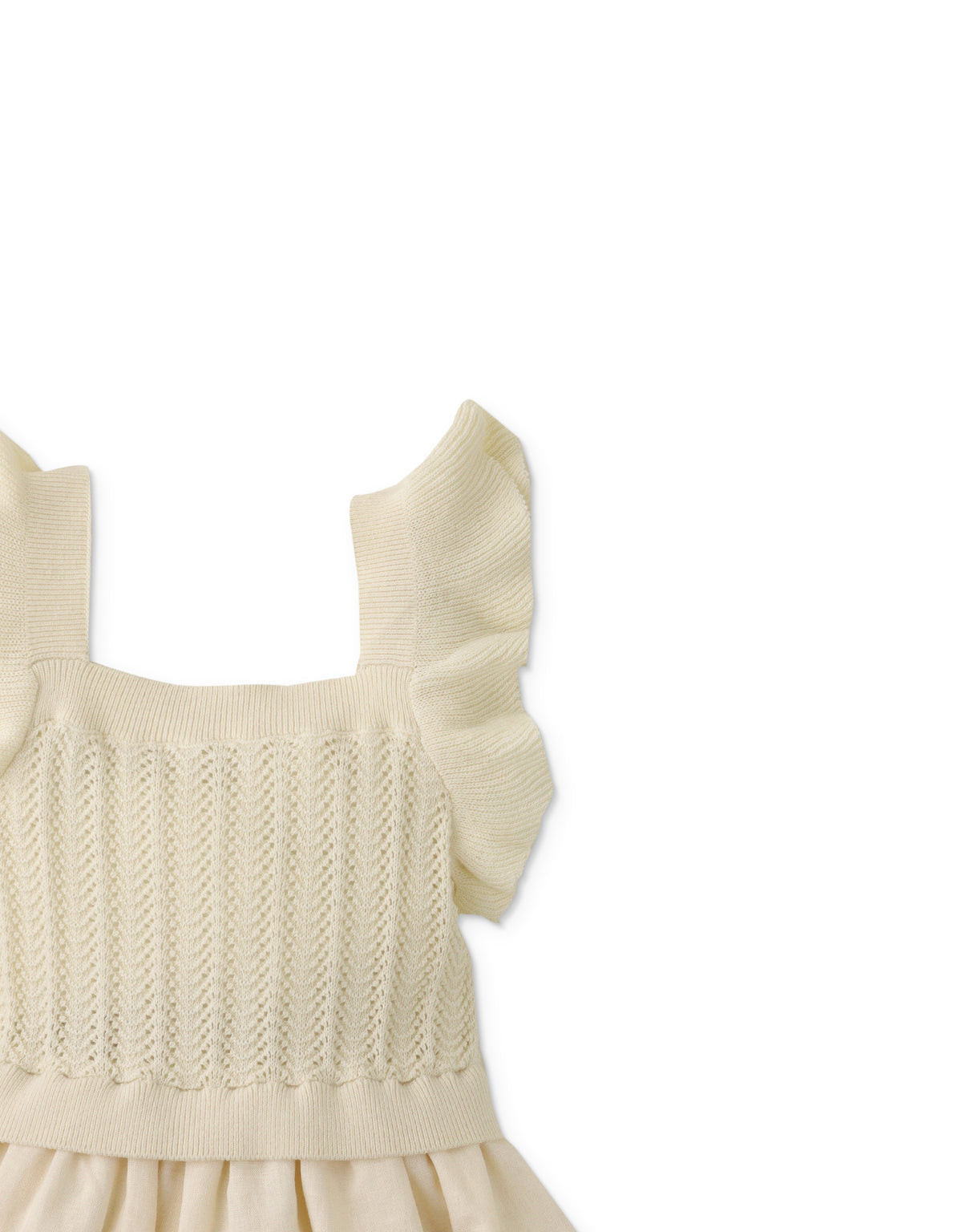 Twirl like a princess in this pointelle knit-waisted dress designed with elegant ruffle sleeves!