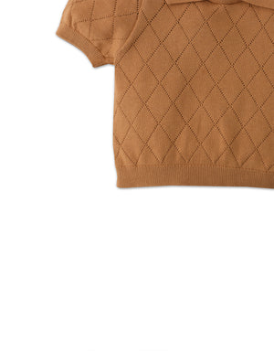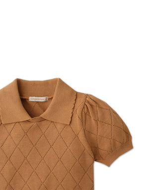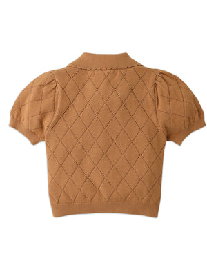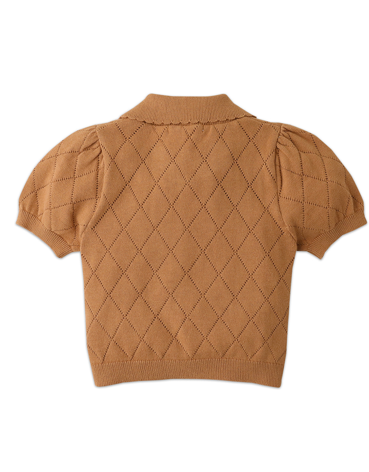 Your little retro star will shine during playtime with this puff-sleeved collar blouse in the richest brown color.