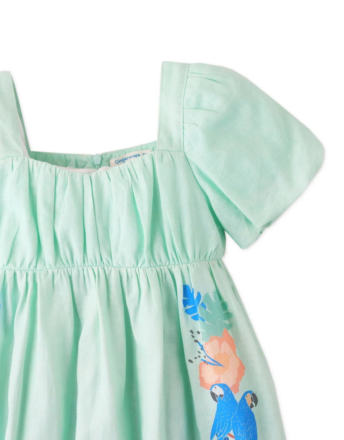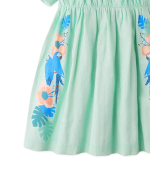 GIRLS PUFF SLEEVES DRESS WITH PARROT GRAPHICS