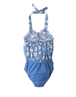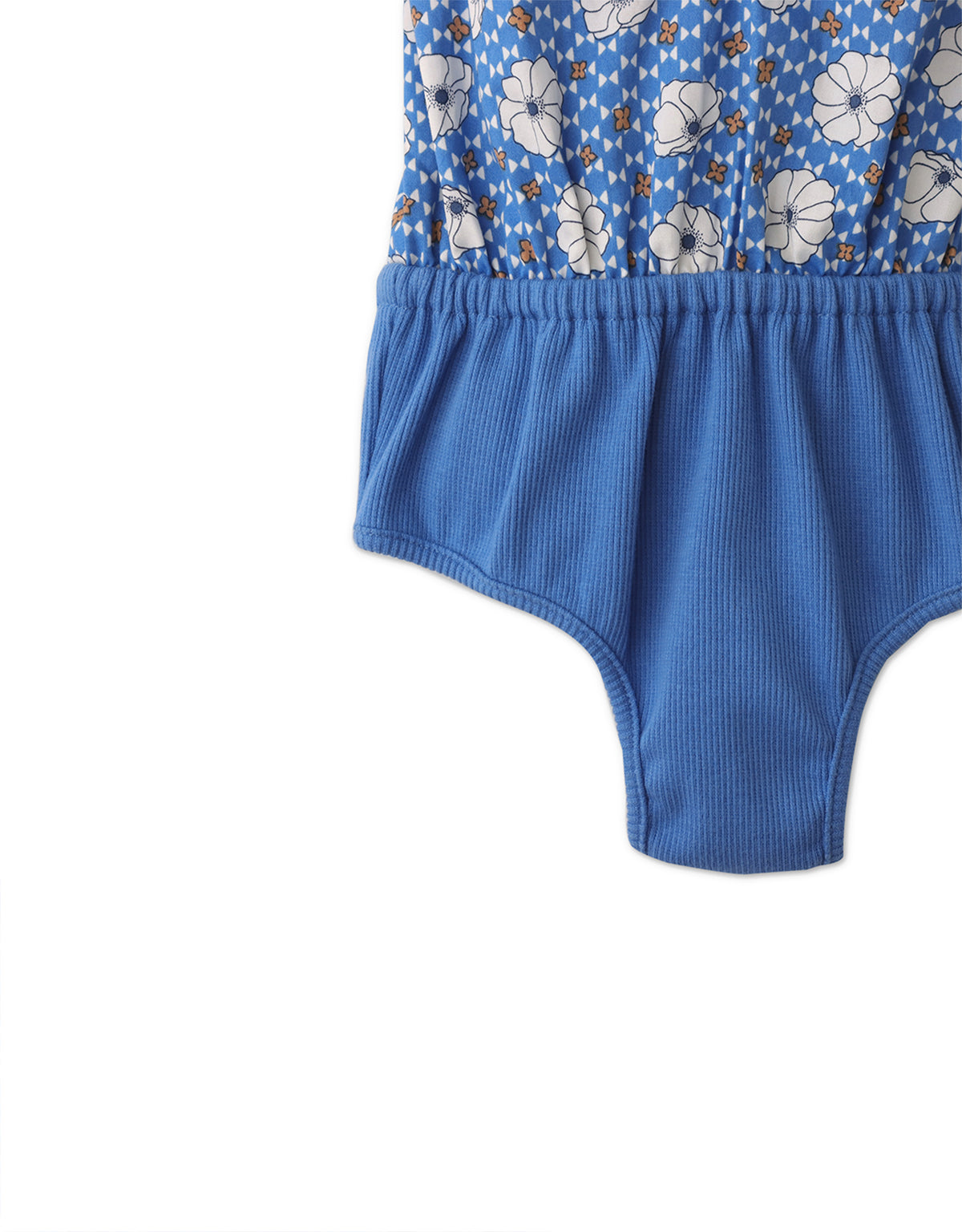GIRLS RETRO FLORAL BODYSUIT WITH RIB BOTTOM