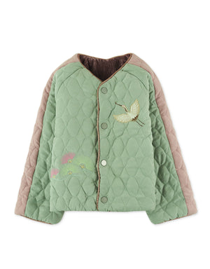 GIRLS REVERSIBLE BUTTON DOWN JACKET WITH EMBRO DETAILS