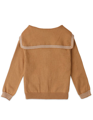 GIRLS SAILOR COLLAR CARDI WITH STRIPEY DETAILING