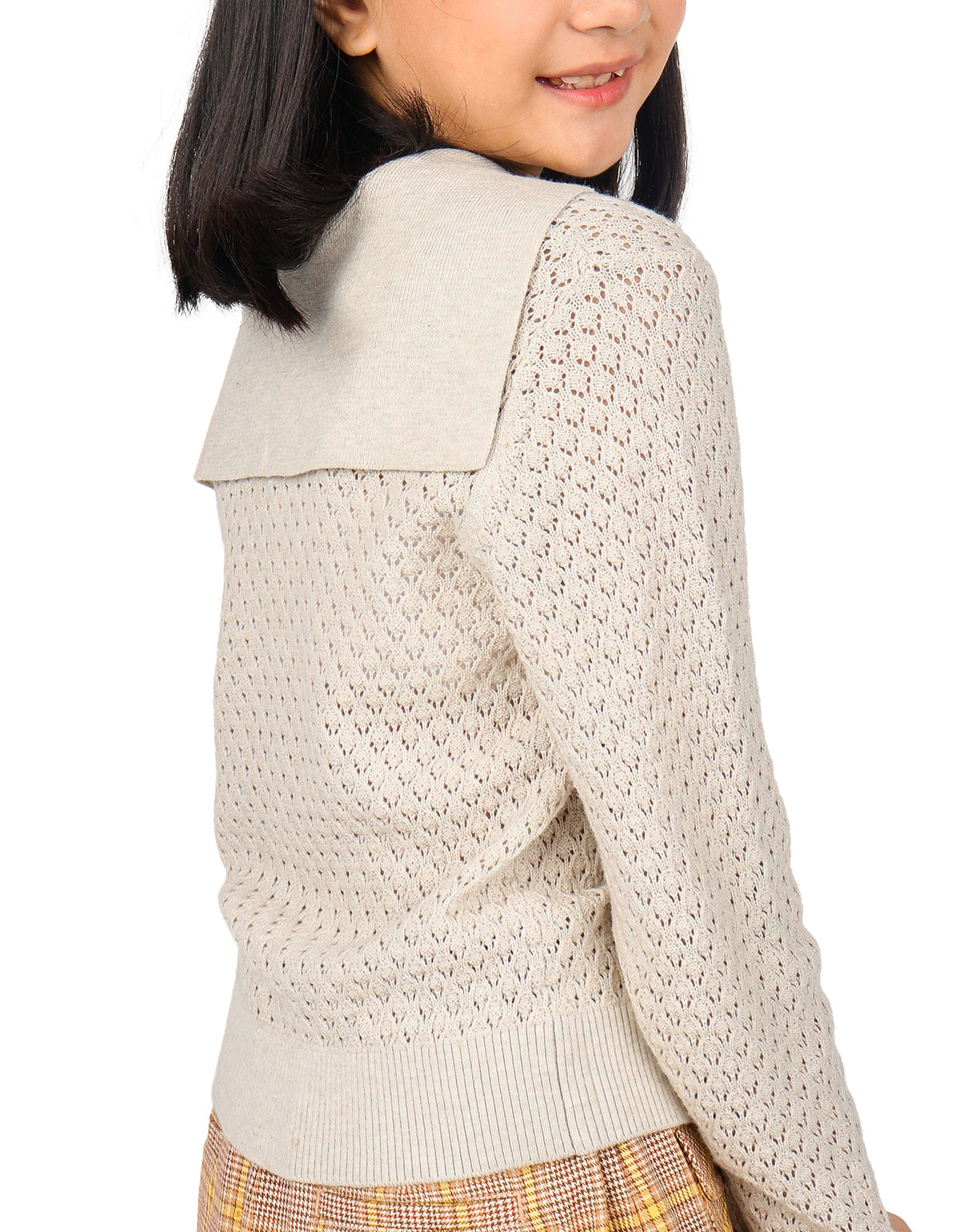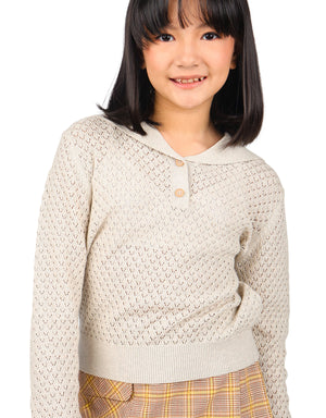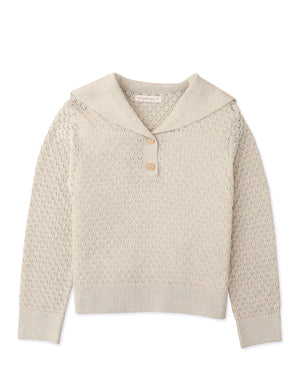 GIRLS SAILOR COLLAR POINTELLE KNIT LONG SLEEVES TOP