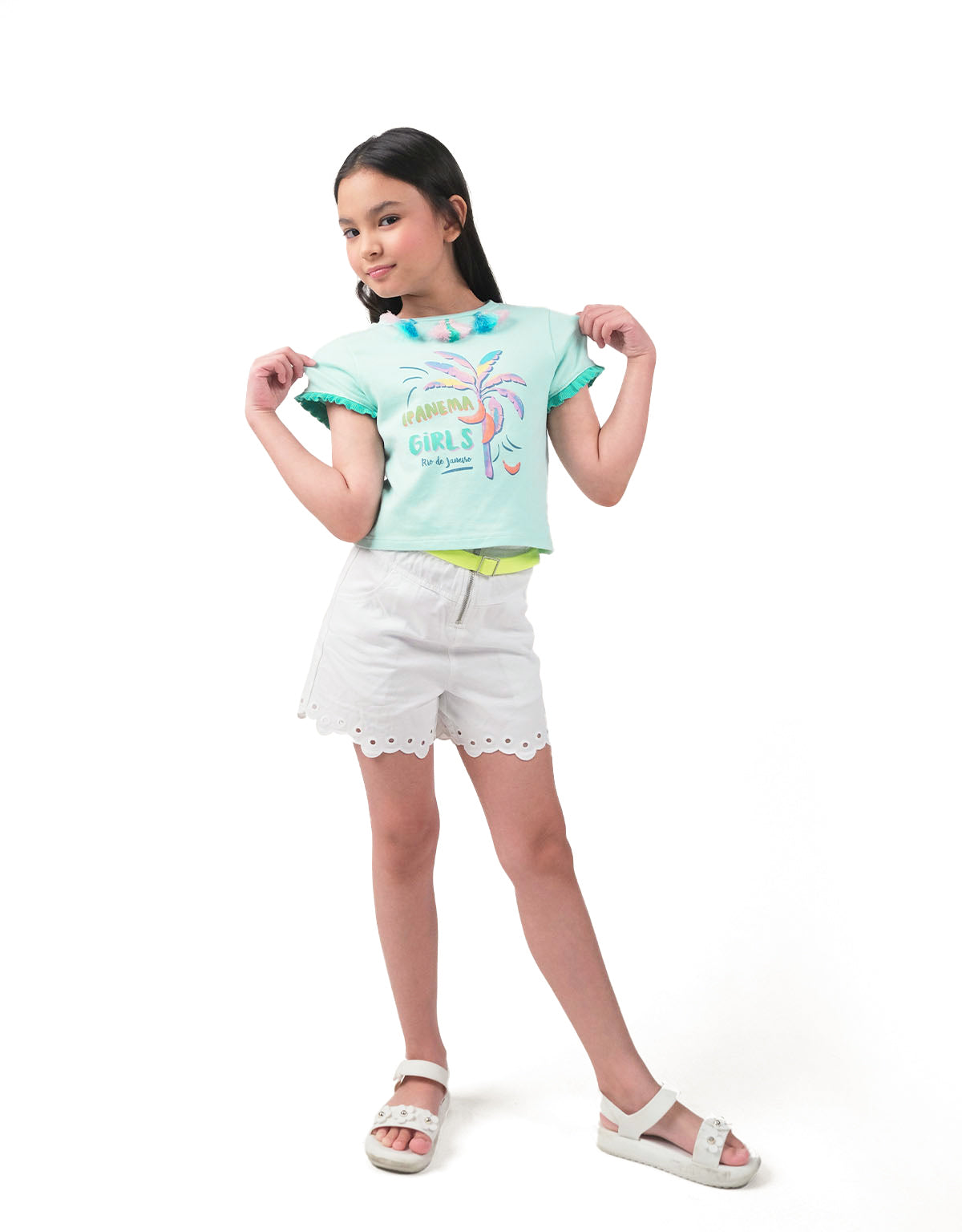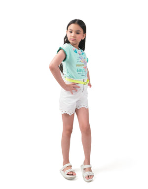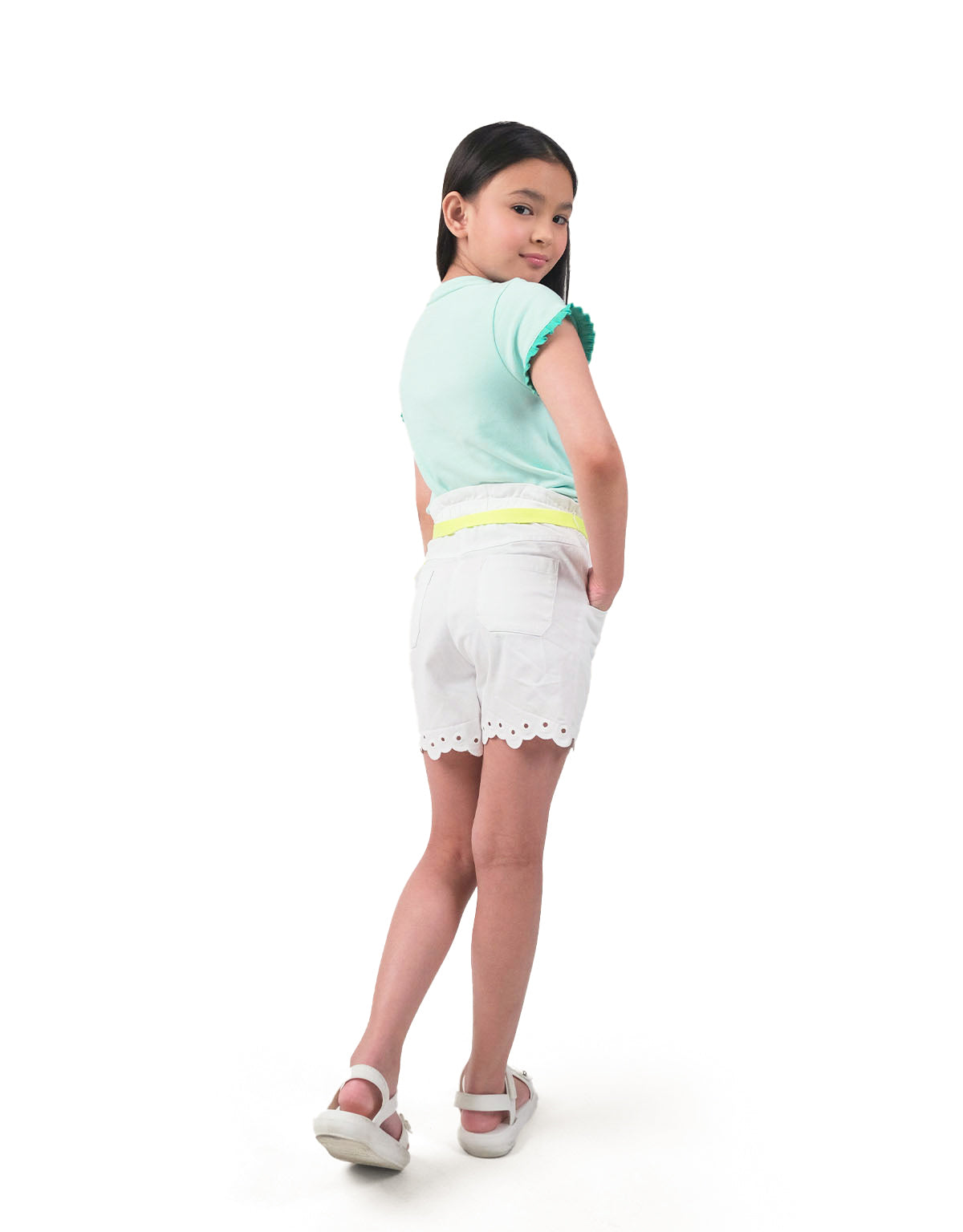 GIRLS SCALLOPED PAPER BAG SHORTS WITH GARISSON BELT