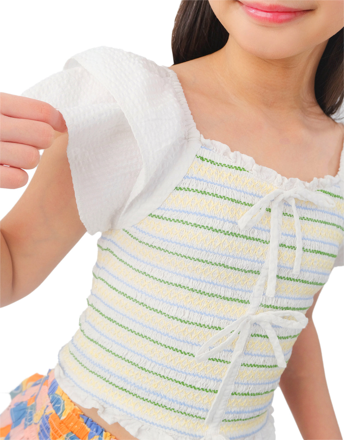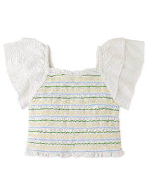 GIRLS SMOCKED BUTTERFLY SLEEVES BLOUSE