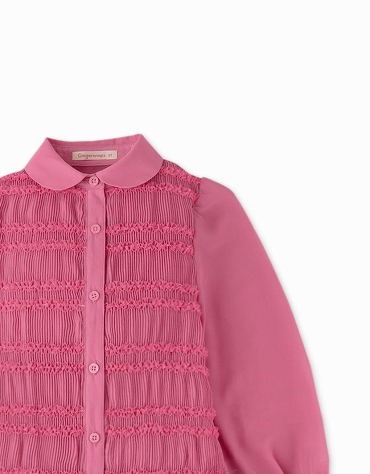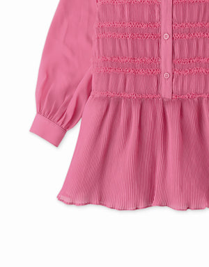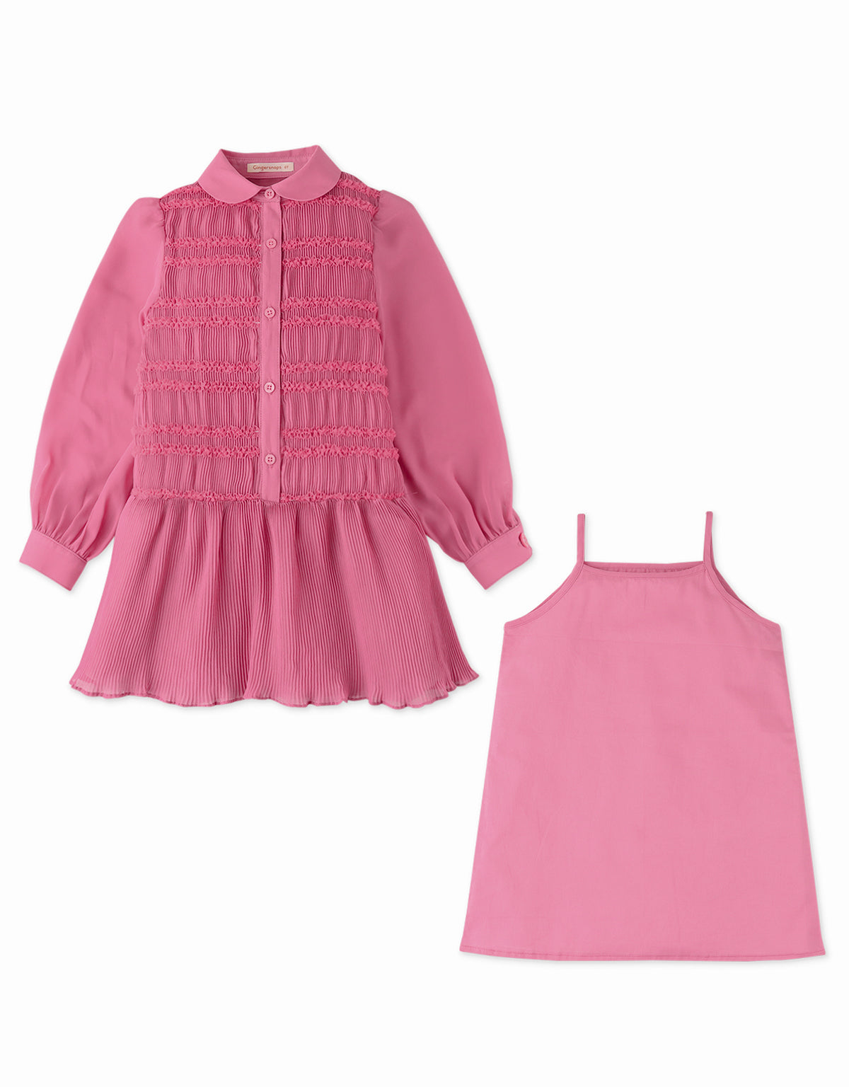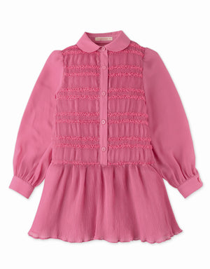 GIRLS SMOCKED DRESS WITH ELECTRIC PLEATED SKIRT DETAIL