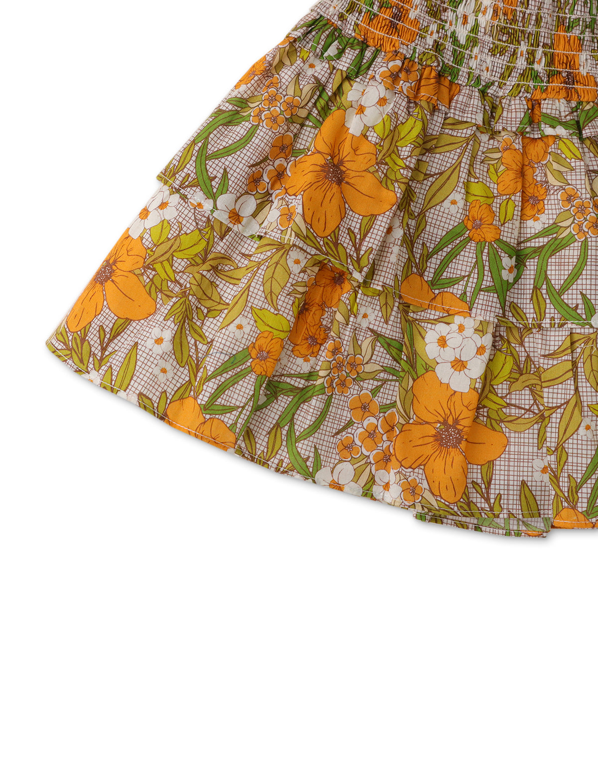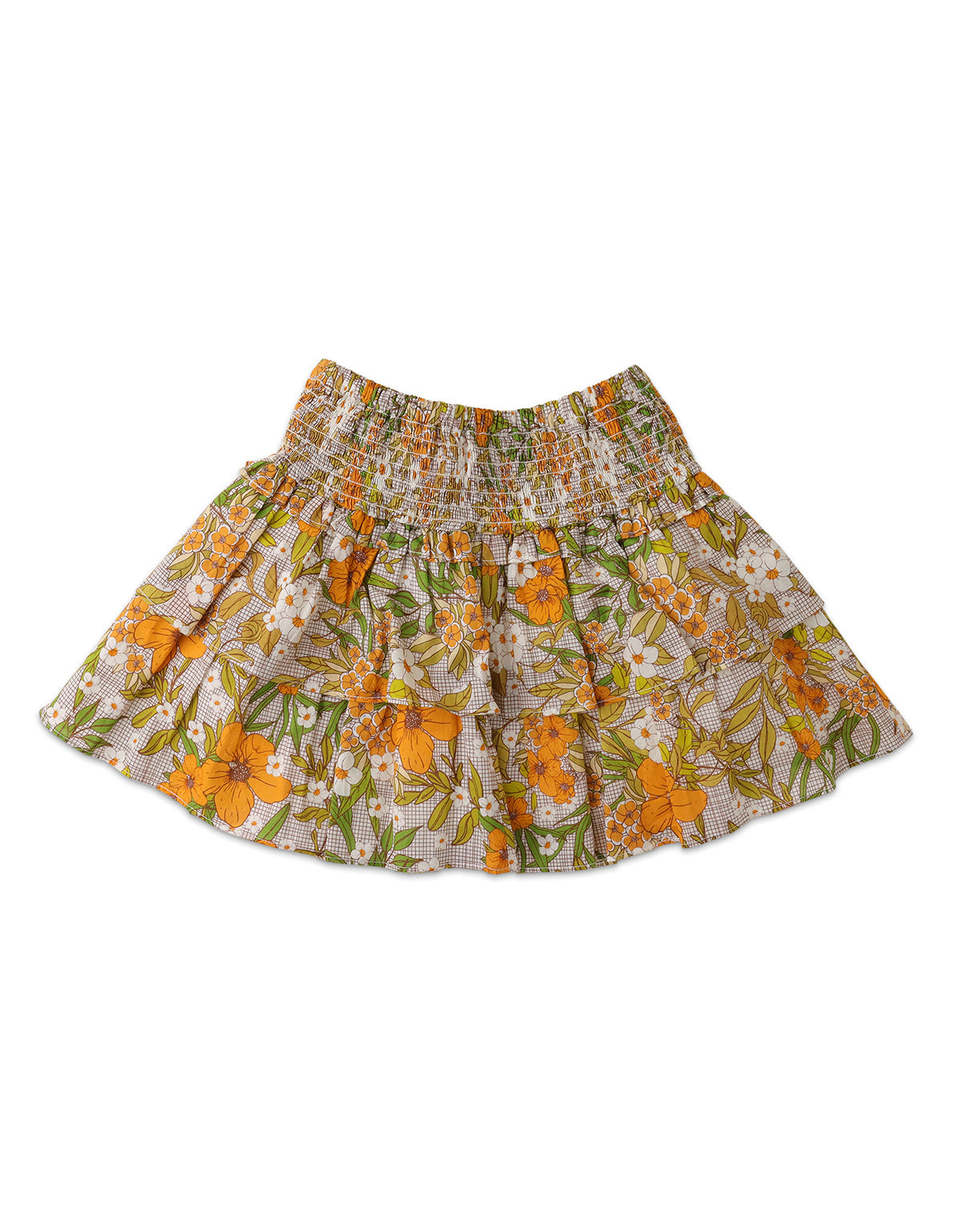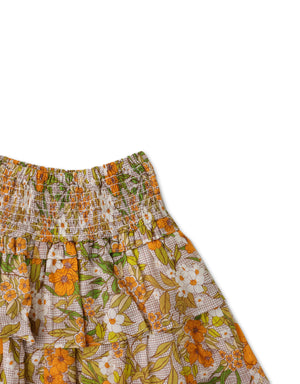 GIRLS SMOCKED TIERED SKIRT WITH FLORAL PRINT