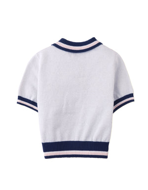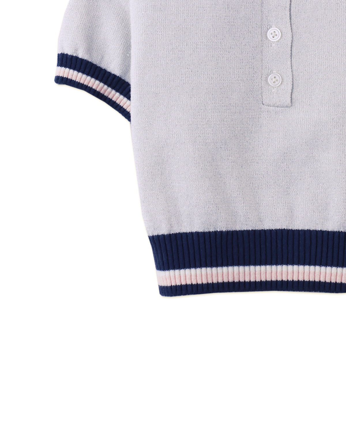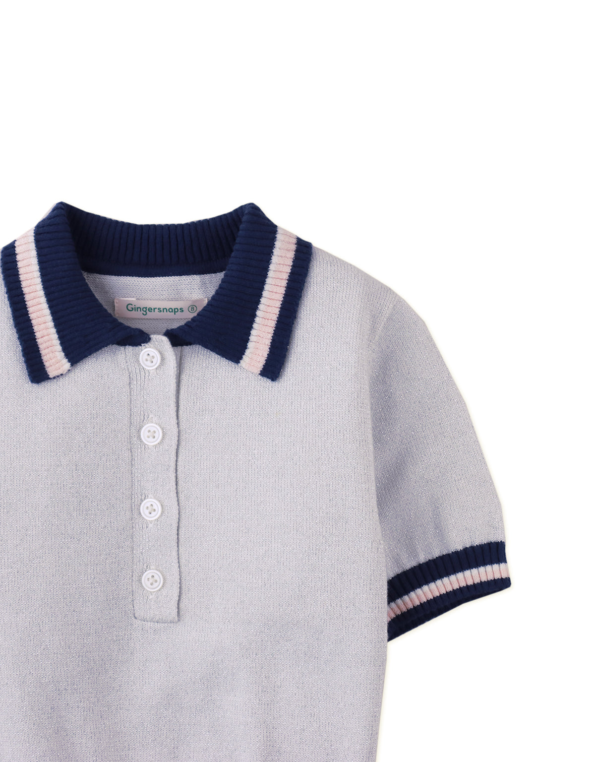 SUE KNIT TOP SHIMMERY WITH CONTRAST RIBBING