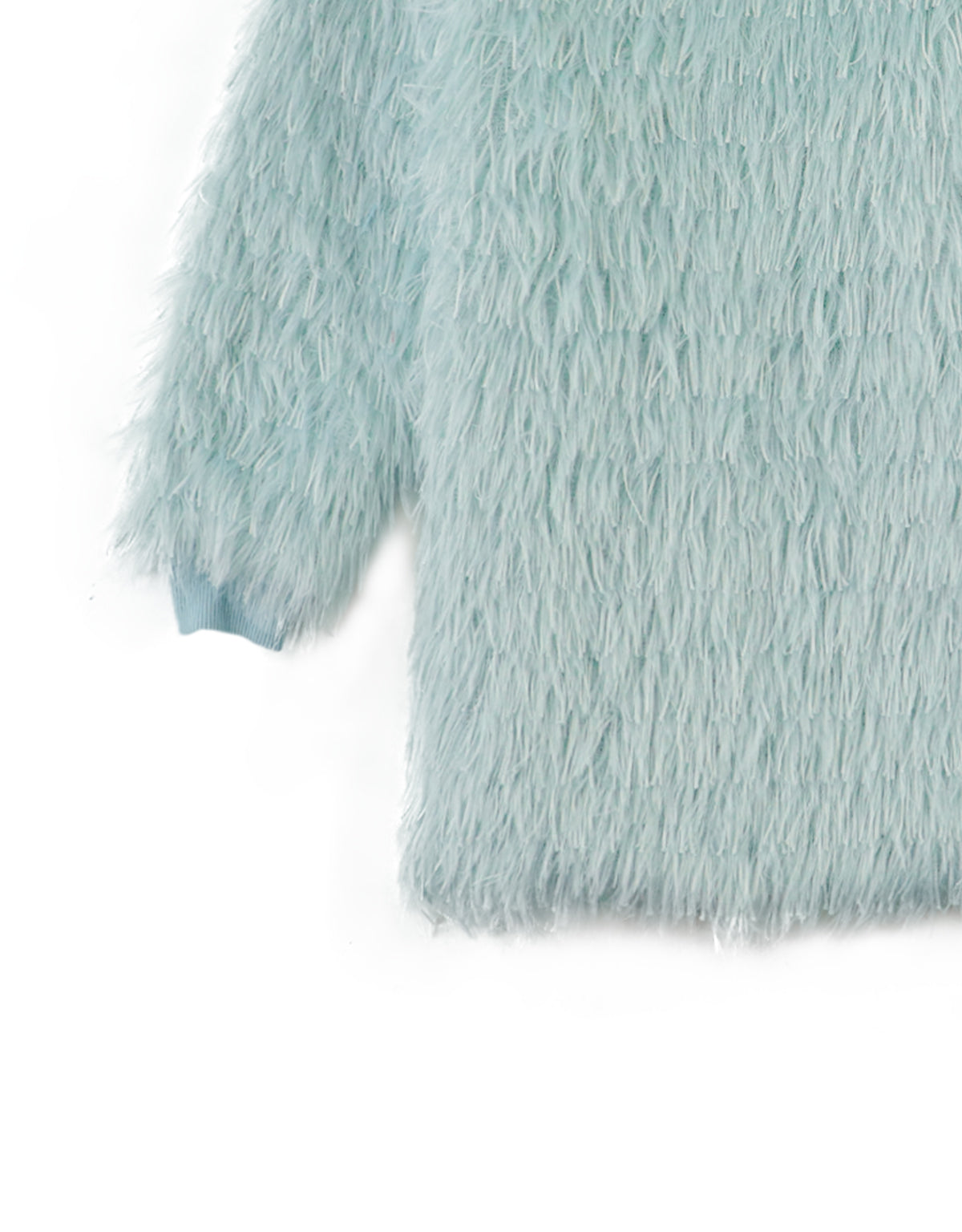 GIRLS SWEATER DRESS WITH RIBBING COMBI