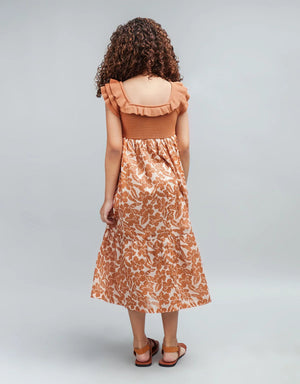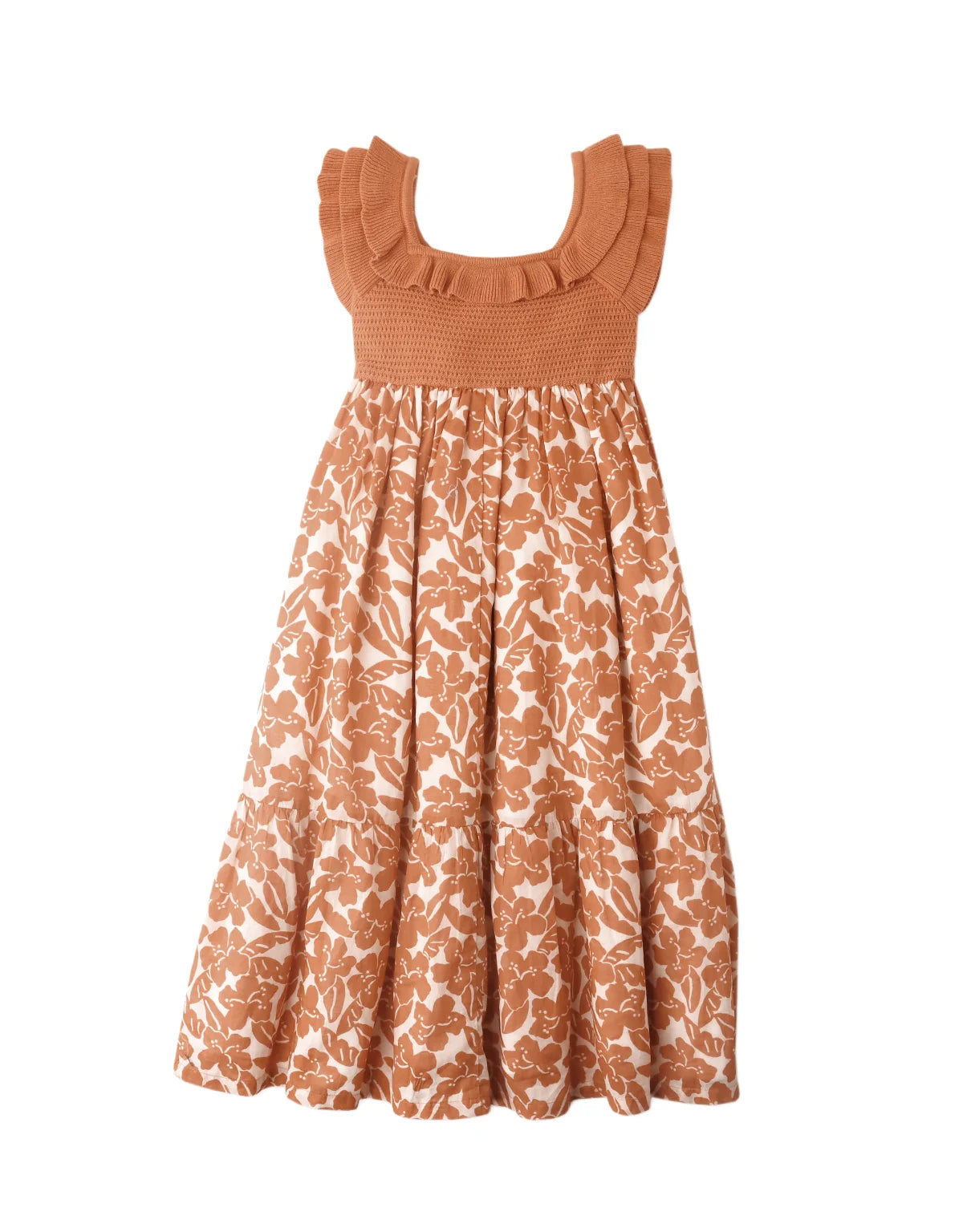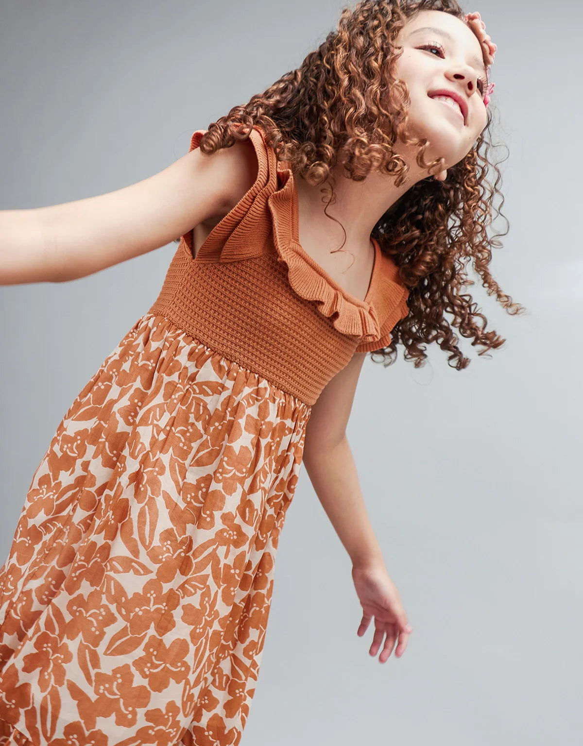 GIRLS SWEATER KNIT BODICE WITH FLORAL PRINT MAXI DRESS