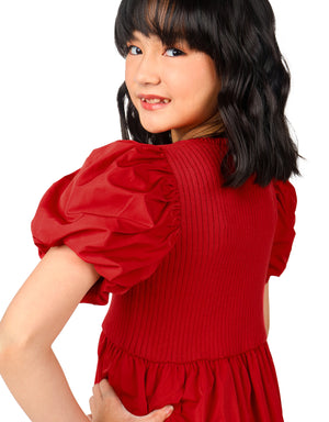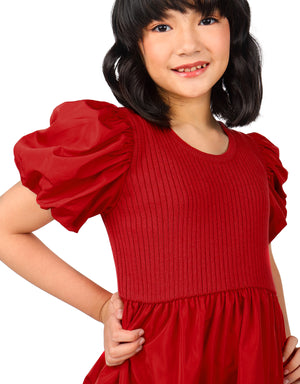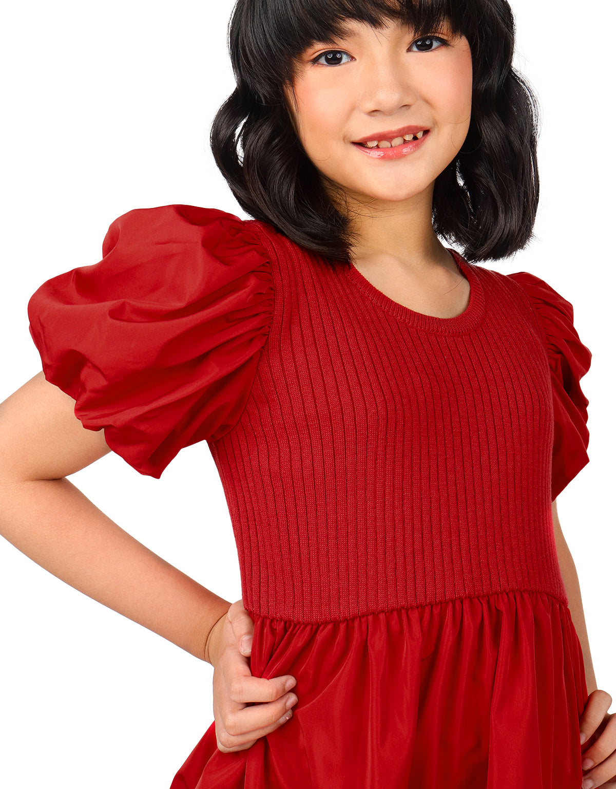 GIRLS TAFFETA BUBBLE SLEEVES DRESS