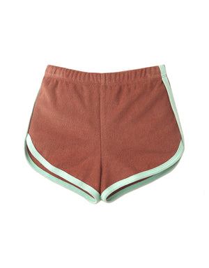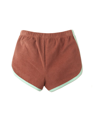 Dress your girl in the cutest bottoms with our towel-terry dolphin shorts in the warmest brown color.