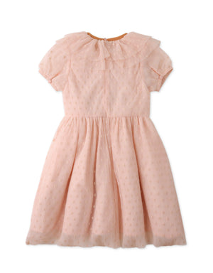 GIRLS VELVET DOTTED TULLE DRESS WITH FRILLY COLLAR