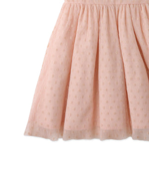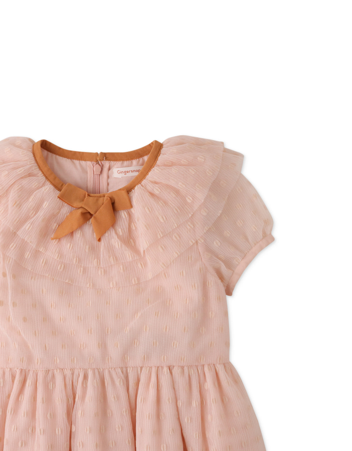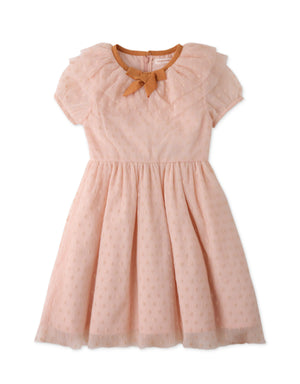 Look effortlessly adorable in this dotted tulle dress with a tiered collar and the cutest ribbon!
