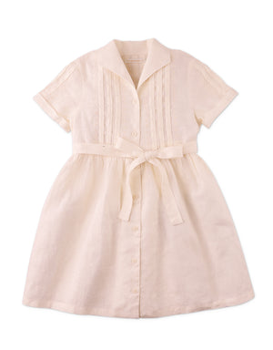 Our Vera pintuck dress is adorned with intricate embroidered details, making it the perfect choice for adding timeless charm to your little one's wardrobe.