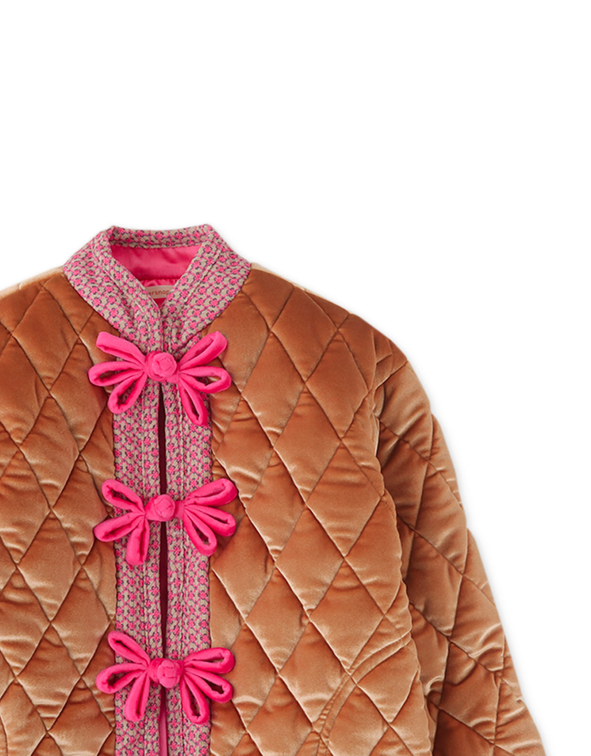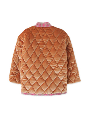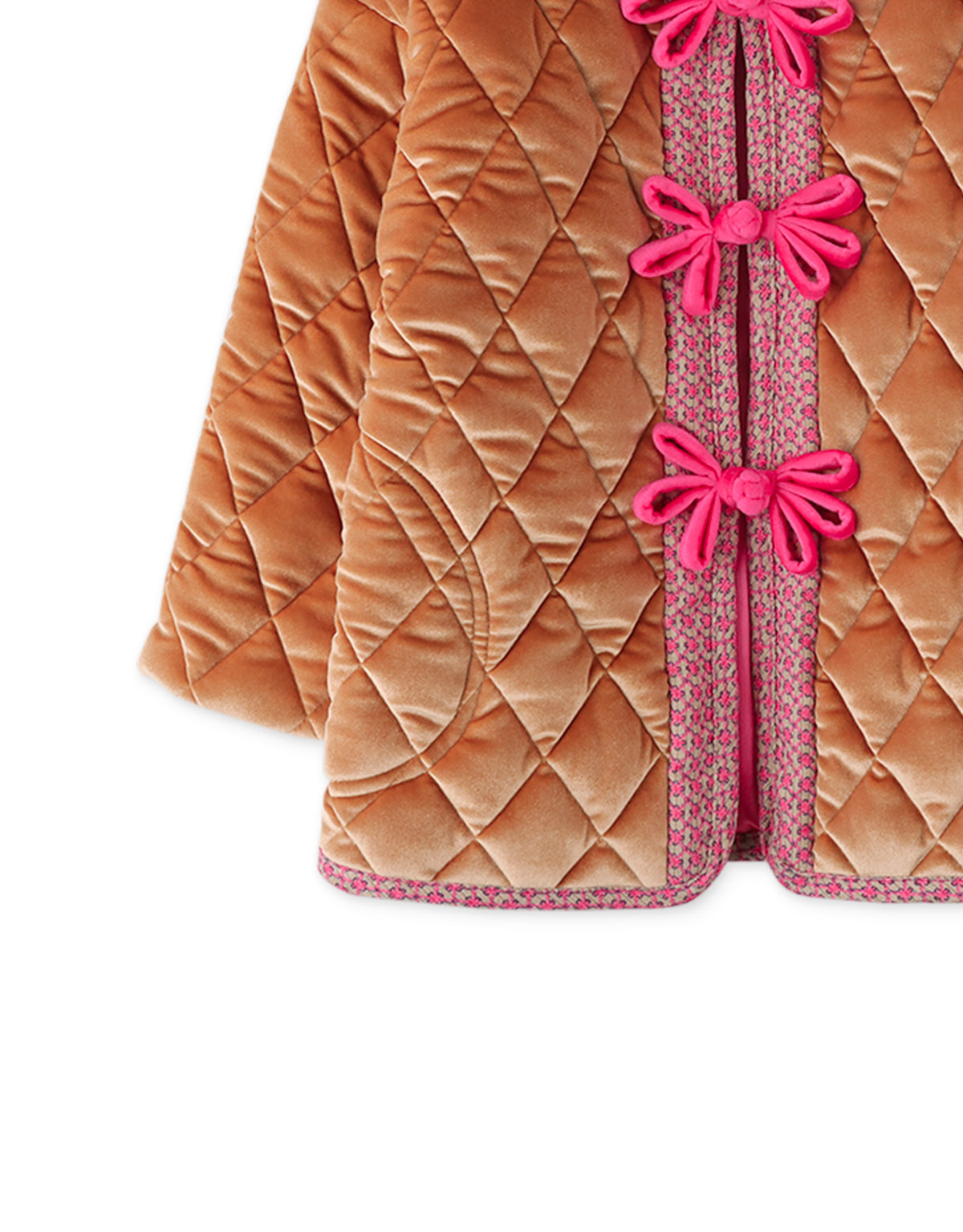 GIRLS WADDED VELVET COAT WITH CONTRAST BINDING AND BUTTON LOOPS