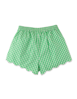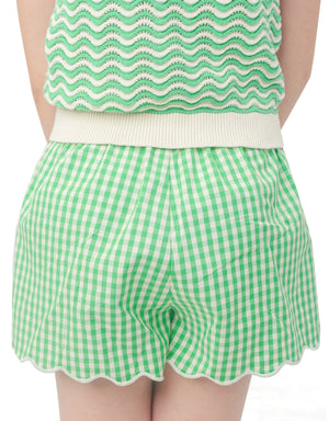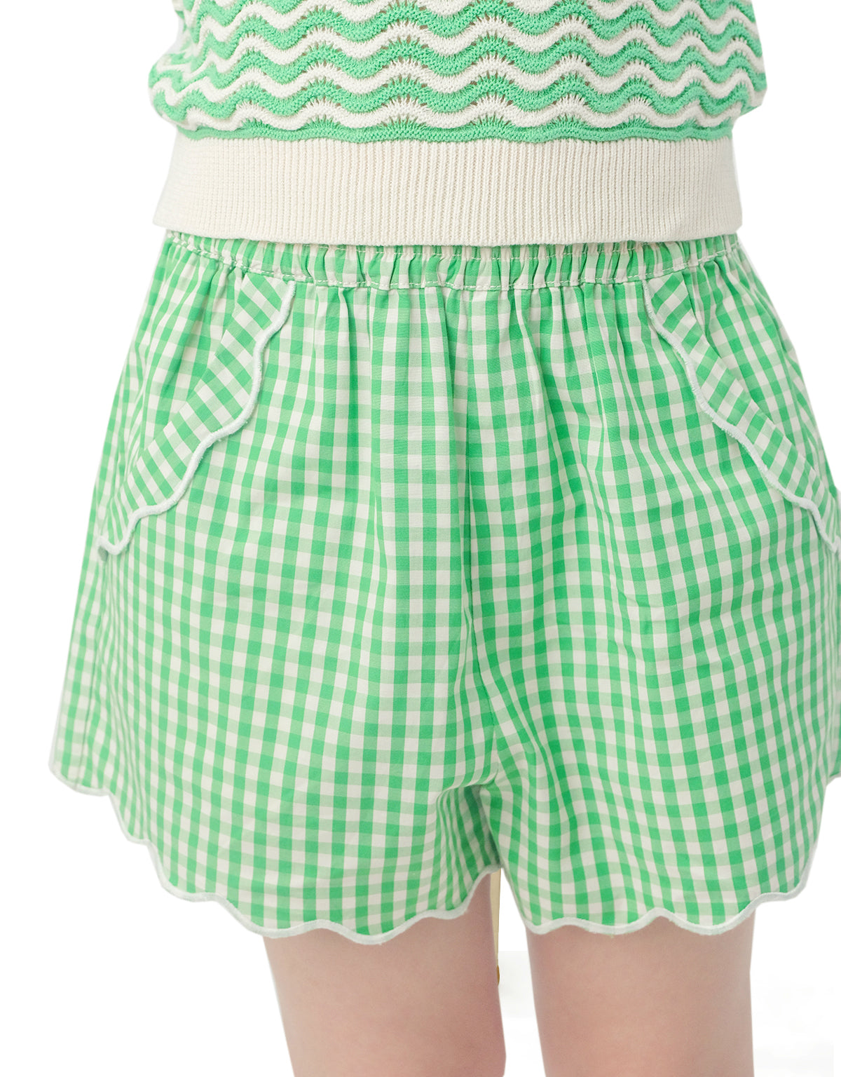 GIRLS WAVY TRIM GINGHAM SHORTS