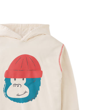 GREGORY HOODED SWEATSHIRT OFFWHITE WITH GORILLA HEAD GRAPHIC