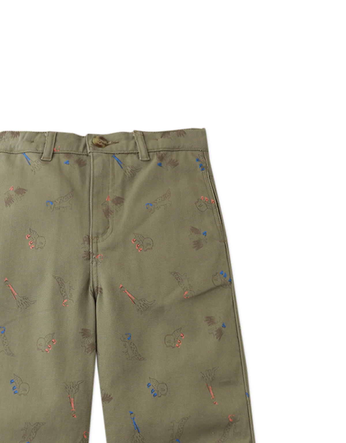 Get ready to stomp, roar, and groove in our Harold Loose Pants in khaki green, featuring our Dino Party print.