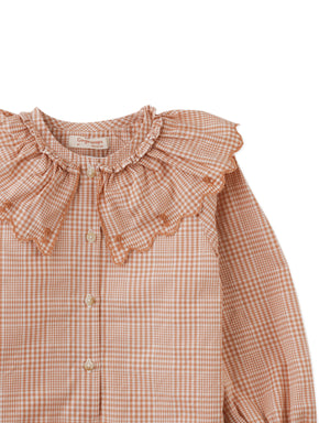 The Helen Blouse in Bauer, with its embroidered cape, brings a cozy cottage-style charm to your child's wardrobe, perfect for whimsical adventures.