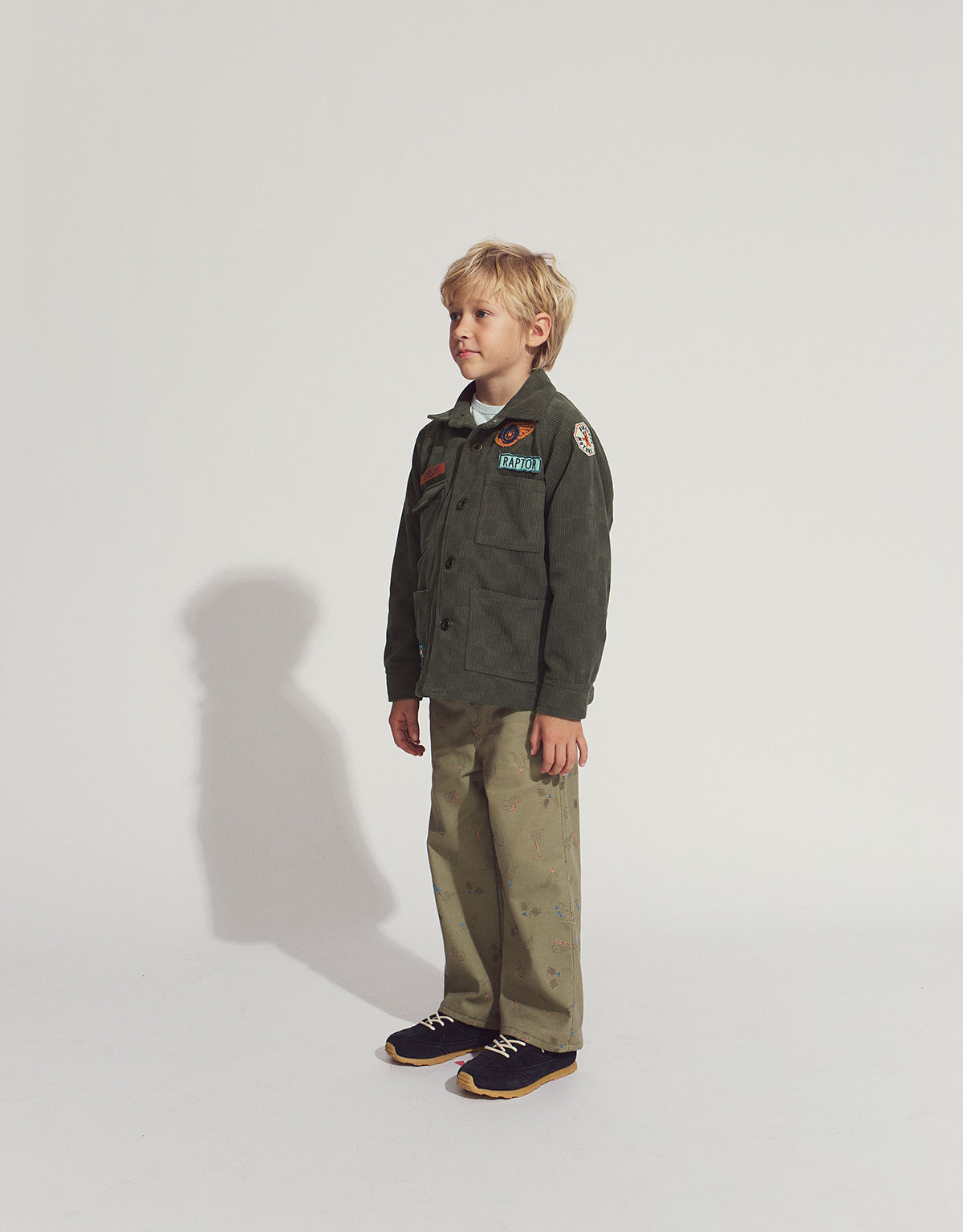 Built for daring quests and adorned with cool embroidery and fun patches, the Hunter Utility Jacket in Mistywood is your little one's ultimate adventure buddy.