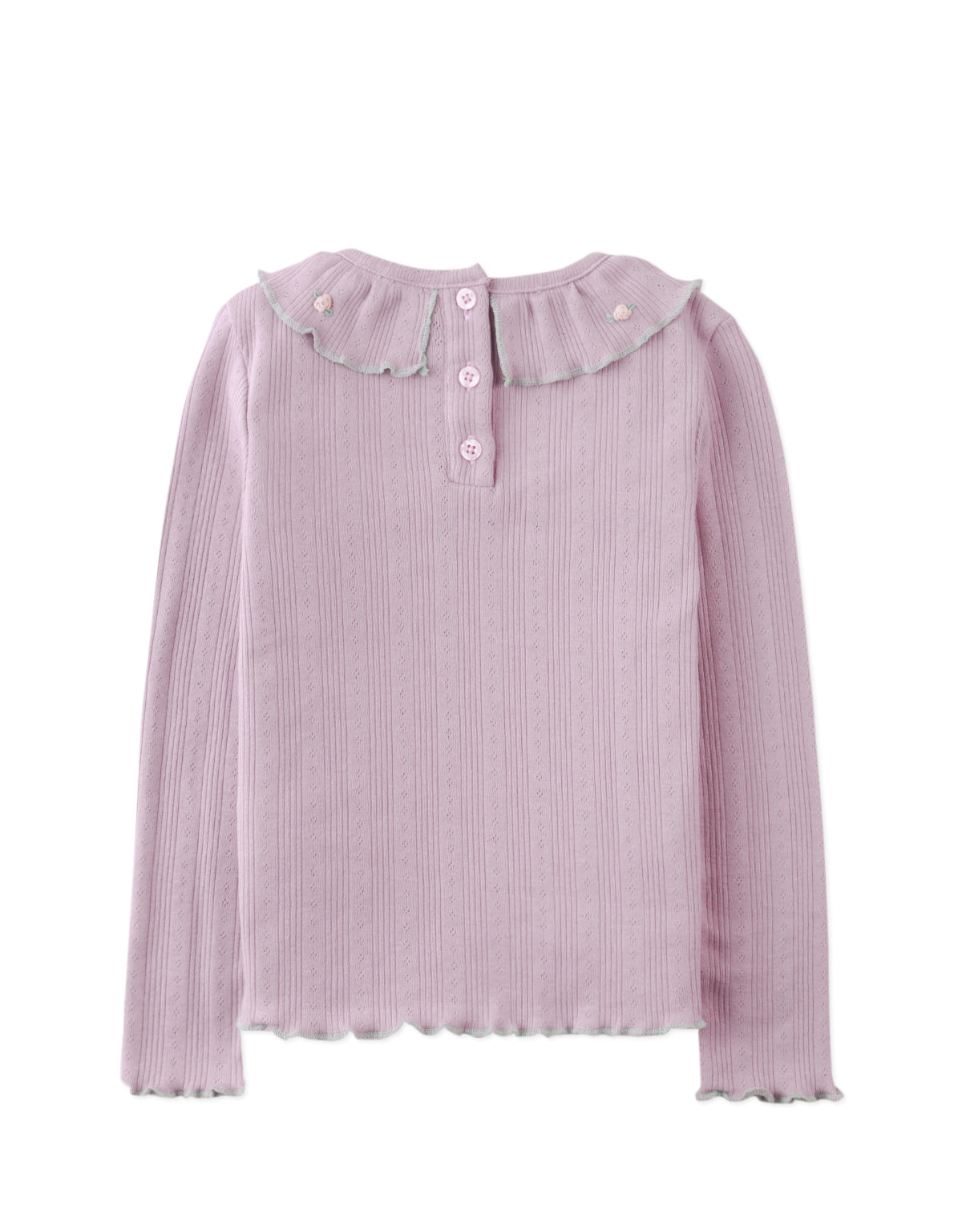 Dress your little one in the Jenny Long Sleeves Tee in Lilac, featuring an embroidered ruffled collar for a sweet, cottage-inspired look.
