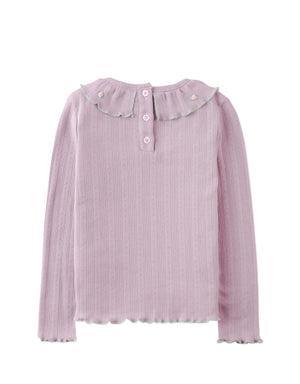 JENNY LONG SLEEVES TEE LILAC WITH EMBROIDERED RUFFLED COLLAR