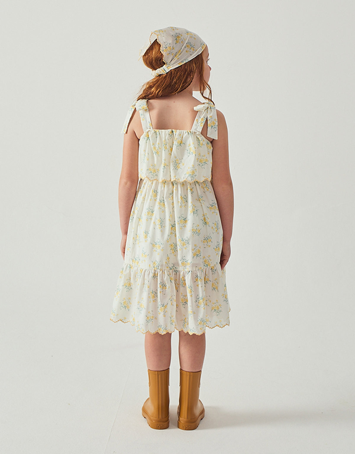 Brimming with summertime sweetness, this tiered sundress features embroidered botanicals, bow tie straps, and layers made for twirling and playing all day.