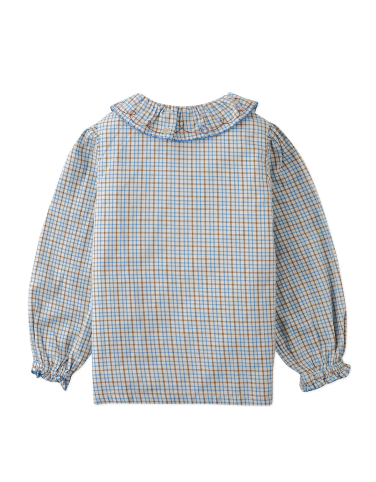 Add a touch of rustic charm to your little one's wardrobe with the Laurel Long Sleeves Blouse in Rancher checkered, featuring a beautifully embroidered horse on the collar!