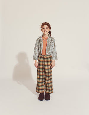 Evoking nostalgia, the Leonor Bolero in velvet gray, with its shawl collar and contrast rouleaux embroidery, brings a stylish, vintage-inspired touch to your child's wardrobe.