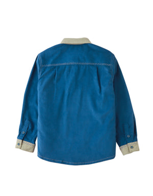 LIEV BUTTON DOWN LONG SLEEVES SHIRT PALE OLIVE/BLUE COLORBOCK WITH MACHINE STITCHING ACCENTS