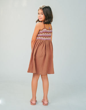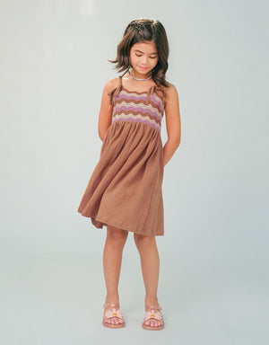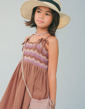 Capturing the essence of sunny days, this sun dress blends a wavy knitted bodice with an airy silhouette for a look as lighthearted as your little gem.
