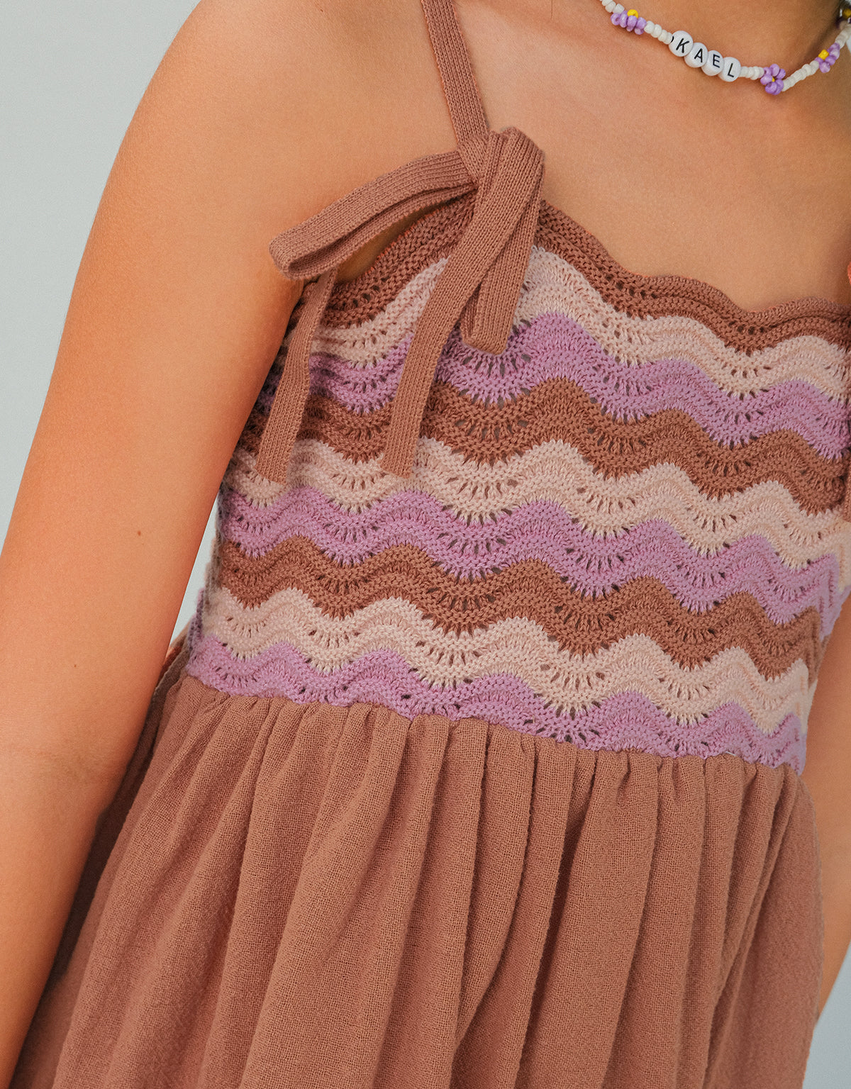MALAYA SUN DRESS WITH WAVY KNITTED BODICE