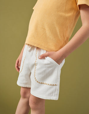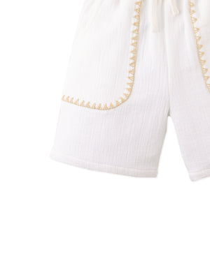 Available in white or beige and detailed with contrast stitching for a refined yet relaxed look, these cotton-linen drawstring shorts bring together effortless style and everyday ease.