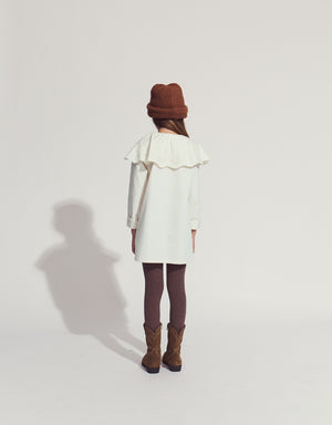 MERYL LONG SLEEVES SHIFT DRESS EGGNOG WITH EMBROIDERED CAPE AND CUFFS
