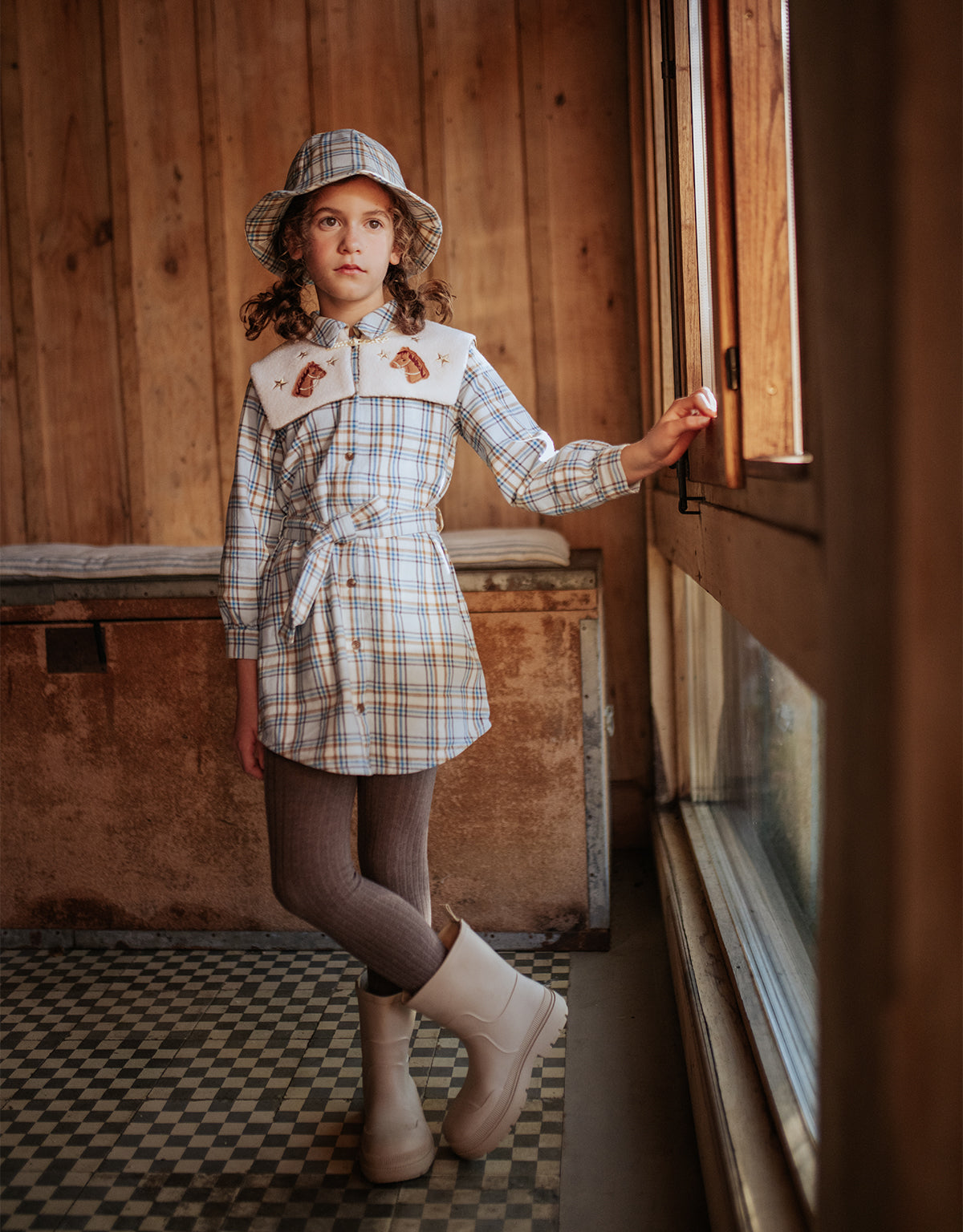 Inspire equestrian dreams with the Mildred Long Sleeves Shirt Dress in Preston Plaid, featuring a horse-embroidered detachable collar for a versatile addition to your little one’s wardrobe!