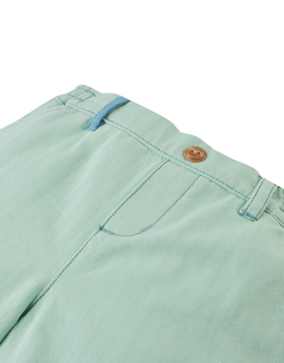 Keep your active boy cool and stylish on sunny days with our classic green Mini Gino shorts, a versatile staple for any closet.