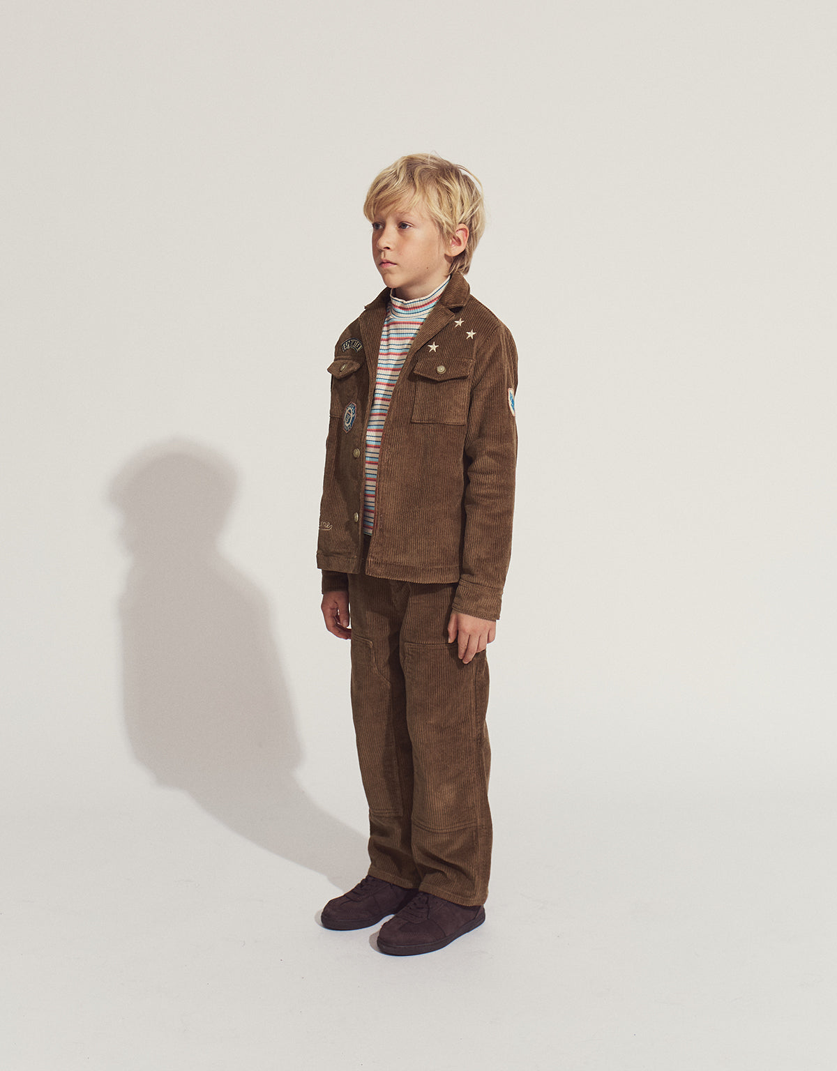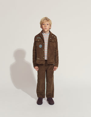 Get your little adventurer ready for anything with our Nicholson Utility Pants in brown corduroy, featuring a rugged design and bold patched knee accents for a perfect blend of style and function.