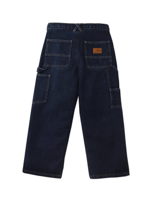 Get your little adventurer ready for anything with our Nicholson Utility Pants in Twilight wash, featuring a rugged design and bold patched knee accents for a perfect blend of style and function.