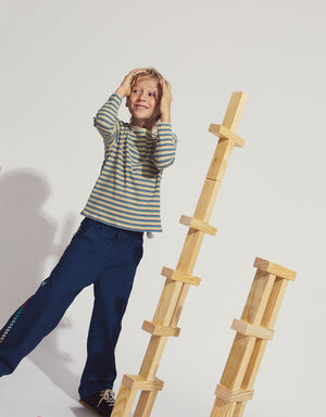 Our Pavel Long Sleeves T-Shirt features vibrant retro stripes with a mix of embroidered and print details— perfect for outdoor adventures, weekend outings, or casual playdates.