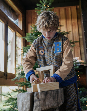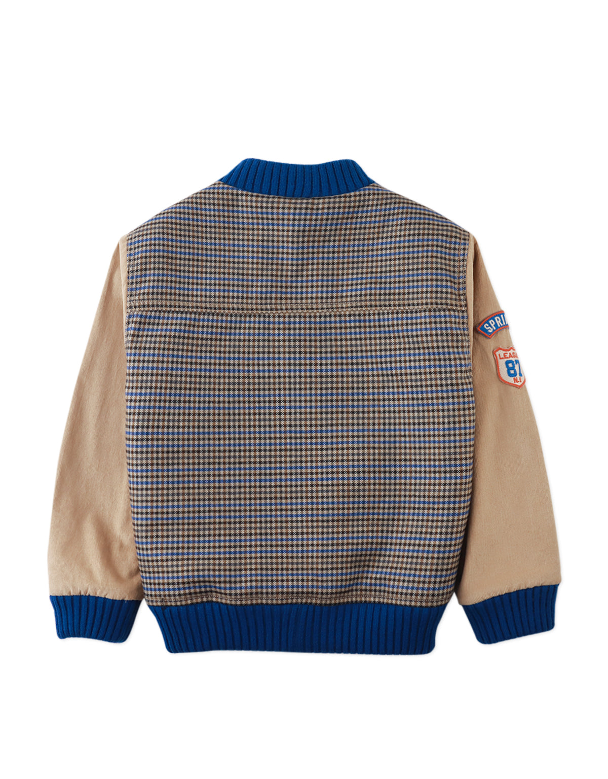 Level up your little man's style with our Rey Jacket, crafted from our Snyder houndstooth pattern to combine classic varsity vibes with a fresh twist.