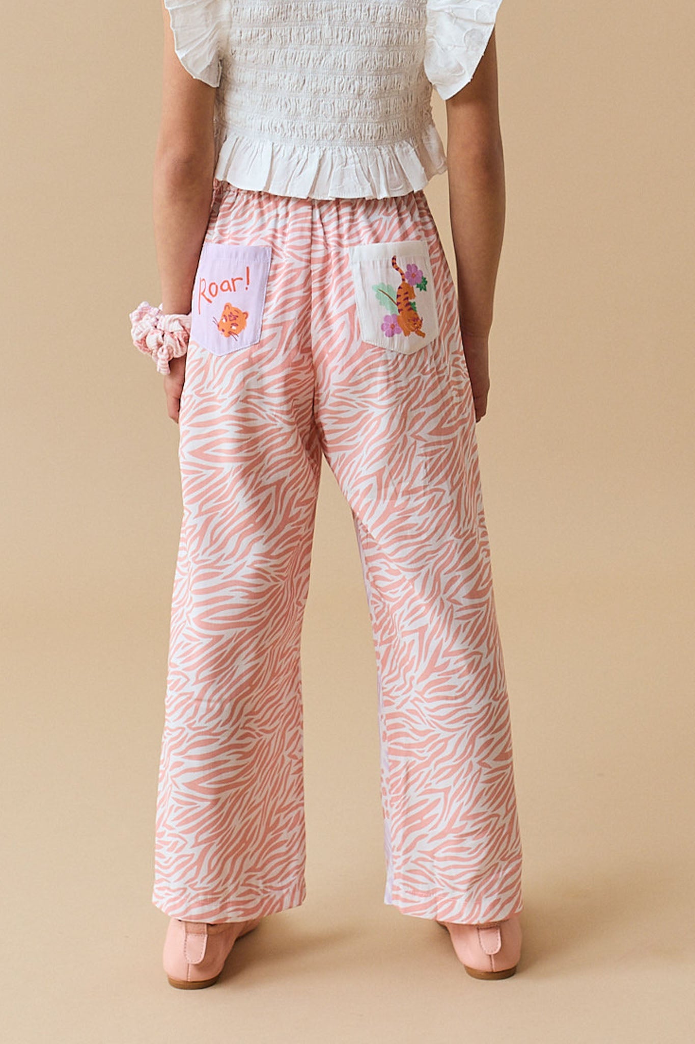 Unleash her wild side with our tiger-printed Shiv pants, perfect for little adventurers who roar with style.