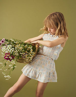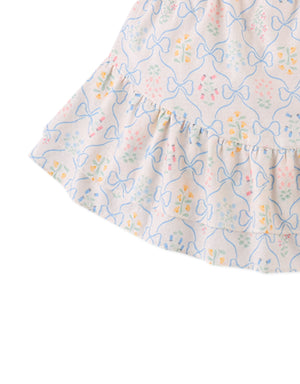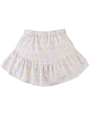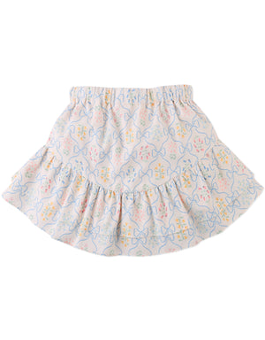 Full of whimsy, these Printed Trellis Star Dobby Tiered Ruffled Skorts combine a delicate trellis design with cascading ruffles, perfect for creating a fun and stylish look.