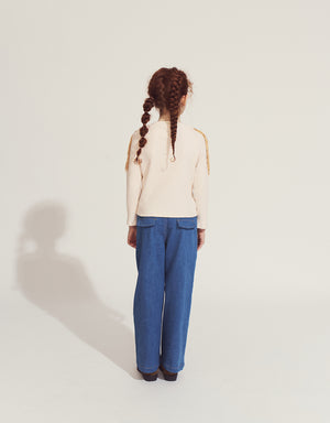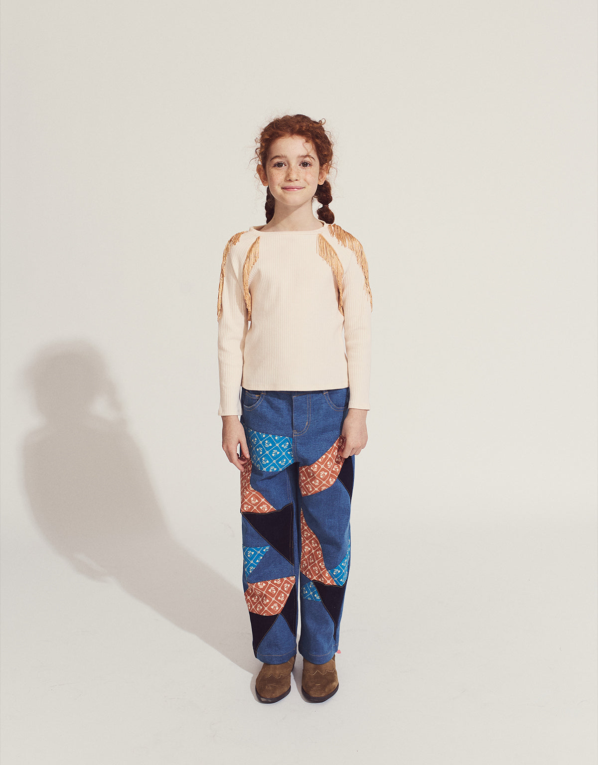 THERESE LONG SLEEVES TOP EGGNOG WITH CONTRAST FRINGE ACCENTS