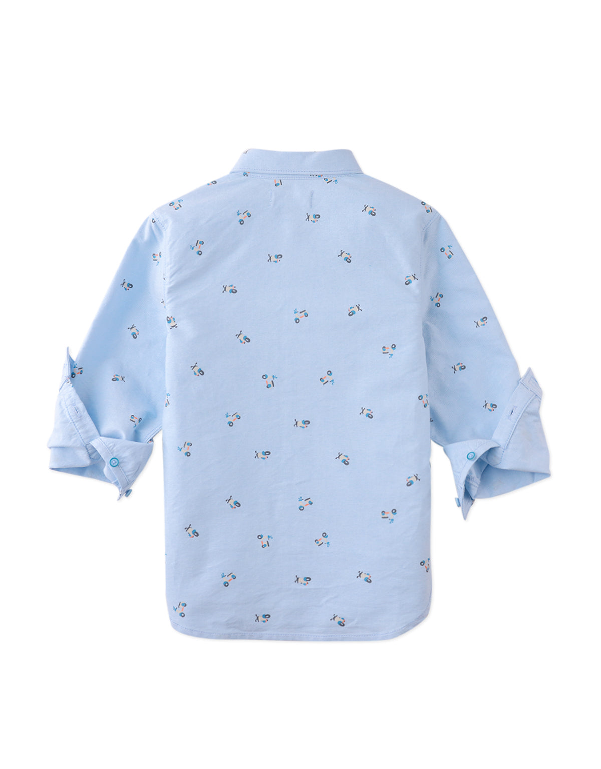 Say hello to your little charmer's ticket to cool: the Tyler Button Down Shirt in laid-black blue, combining a sharp look with a playful twist through our Scoot City pattern.